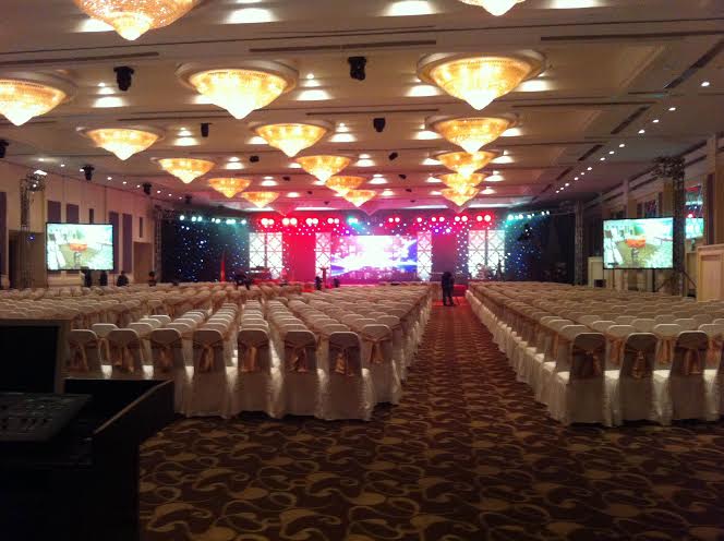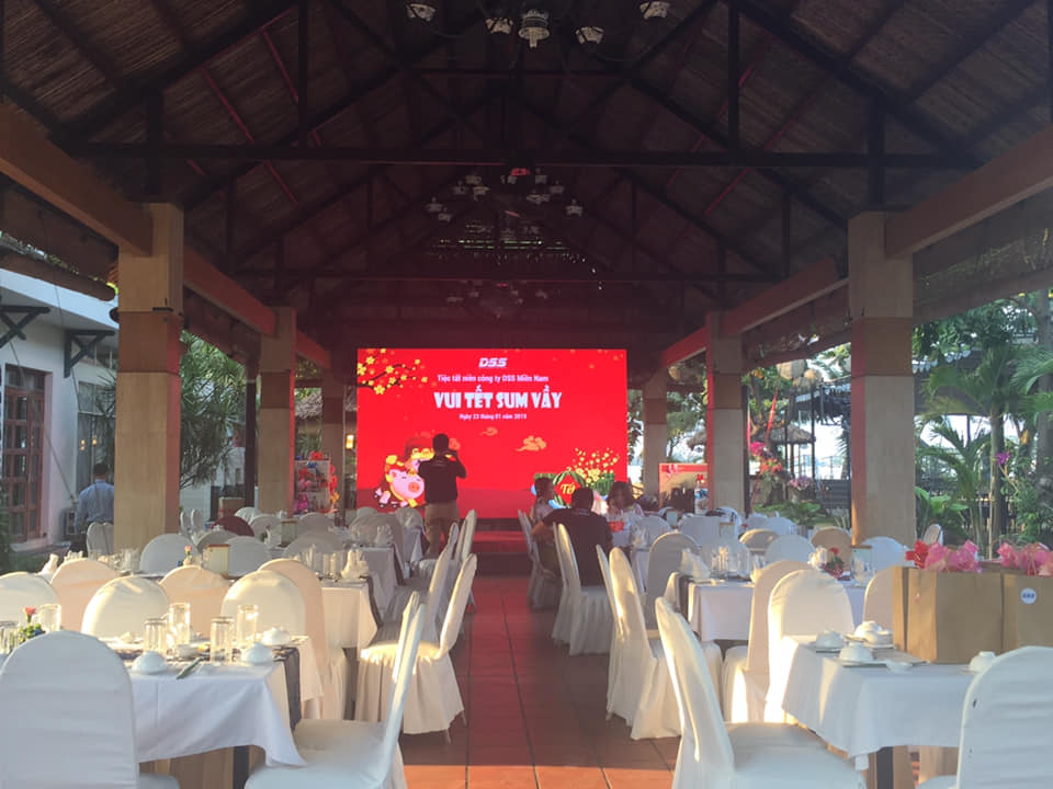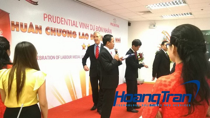 Công ty Hoàng Trần hân hạnh cung cấp máy chiếu 4500 Ansilumen và màn chiếu cho sự kiện này.